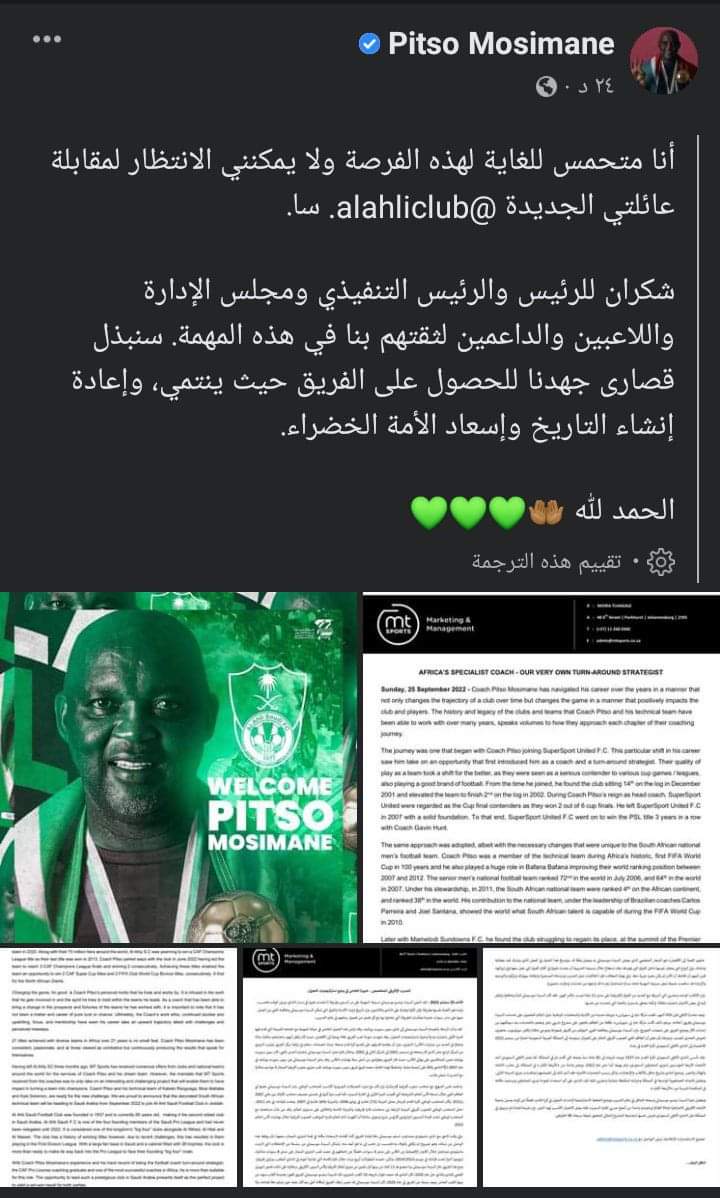 ونشر ” موسيماني ” عبر موقع التواصل الاجتماعي الخاص به ” فيسبوك “، قائلاً:’انا متحمس للغاية لهذة الفرصه ولا يمكنني الانتظار ل عائلتي الجديده الأهلي”.