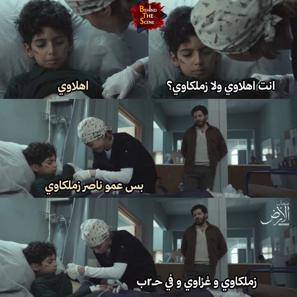 وخلال الحوار، سألته لتخفف الأجواء: «أنت أهلاوي ولا زملكاوي؟»، ليرد الطفل: «أنا أهلاوي بس عمو ناصر زملكاوي، ليعقب ناصر الذي يجسد شخصيته الفنان إياد نصار قائلًا: «زملكاوي وغزّاوي وفي الحرب»، في جملة عكست امتزاج الانتماء الرياضي بالهوية الوطنية وسط أجواء إنسانية صعبة.