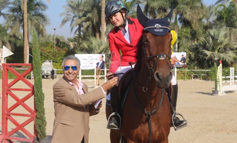 الفرسان المصريون يؤدون التحية للرئيس السيسى على منصات التتويج فى بطولة الجائزة الكبرى